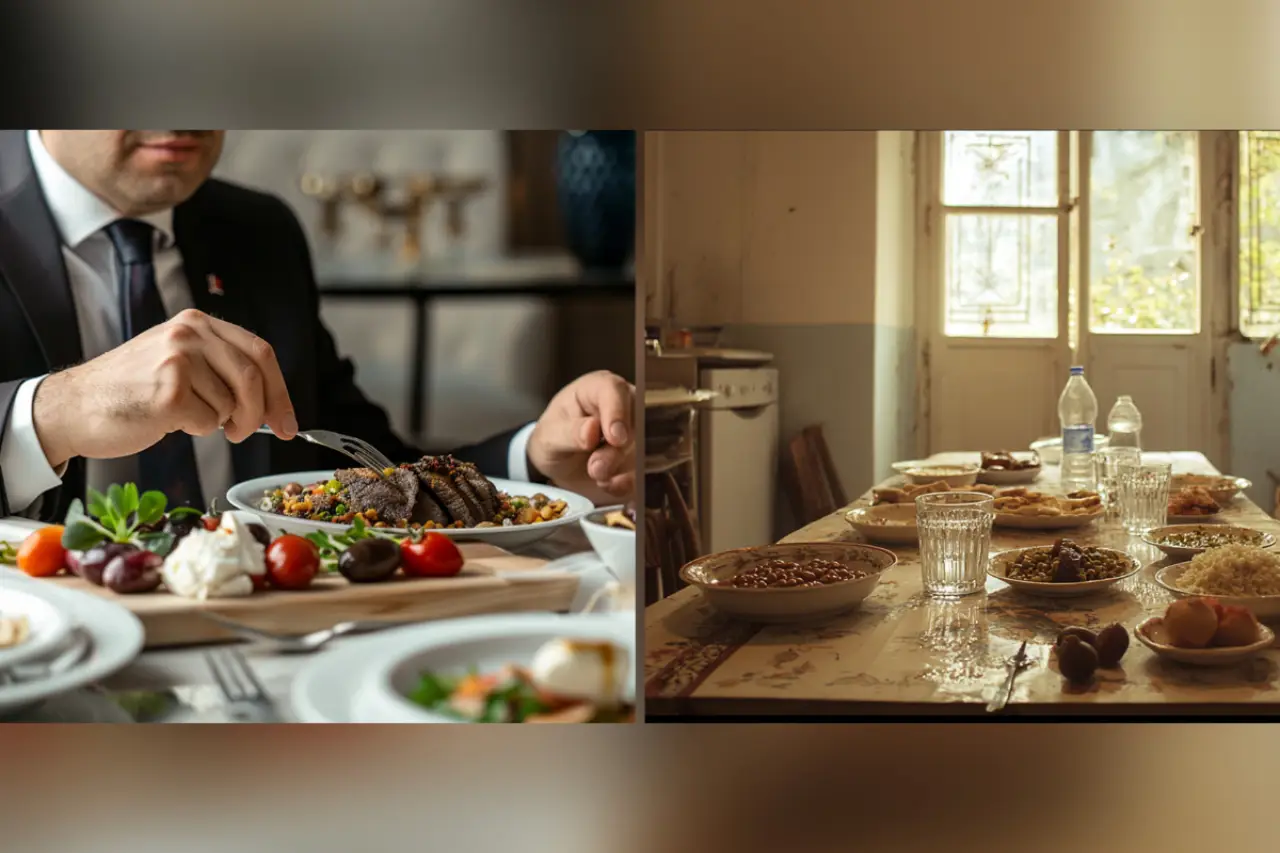 Ramazan, iktidarın ‘Niyetimiz bir, inancımız bir, yolumuz bir’ sloganıyla başladı ama… Soframız ‘bir’ değil Ramazan ayı zengine ve yoksula aynı gelmedi. Erdoğan-Şimşek programı nedeniyle yaşanan ücret ve maaşlardaki erime ramazan sofralarını vuruyor. Dört kişilik bir ailenin mütevazı iftar yemeğinin maliyeti 2 bin TL’yi aştı. Diğer tarafta ise, emekçilerin bir ayda çalışıp kazandığı ücret kadar parayı lüks otellerin bir akşamlık iftar menüsüne harcayan ekonomi ve siyasi asalakların sofrası var. Andaç Aydın Arıduru ve Gözde Tüzer’in haberi